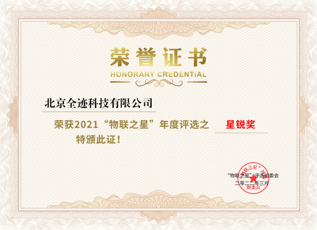 全跡科技上榜物聯之星2021年度十大星銳企業