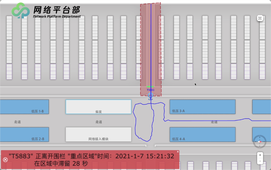如下圖所示,IDC運(yùn)營(yíng)人員會(huì)在業(yè)務(wù)系統(tǒng)上為Jeff注冊(cè)身份信息、配置區(qū)域訪問(wèn)權(quán)限,并關(guān)聯(lián)一張UWB工卡。Jeff攜帶工卡進(jìn)入機(jī)房區(qū)域后,UWB定位系統(tǒng)會(huì)對(duì)其進(jìn)行身份識(shí)別和權(quán)限鑒定,并開(kāi)始厘米級(jí)精度的實(shí)時(shí)定位。同時(shí),他的活動(dòng)軌跡也會(huì)被100%完整追蹤,IDC運(yùn)營(yíng)人員可在系統(tǒng)上實(shí)時(shí)觀測(cè)。當(dāng)Jeff進(jìn)入到未被授權(quán)的敏感區(qū)域時(shí),系統(tǒng)還會(huì)觸發(fā)安全告警,并精準(zhǔn)統(tǒng)計(jì)Jeff在敏感區(qū)域內(nèi)的停留時(shí)間。